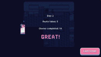 Help this little guy fix their routine. Do chores, take rests, and beat the clock to get everything done before the day is over! Change the in-game speed to your liking, manage your energy bar, and aim for the best rating! A better routine means a better life.